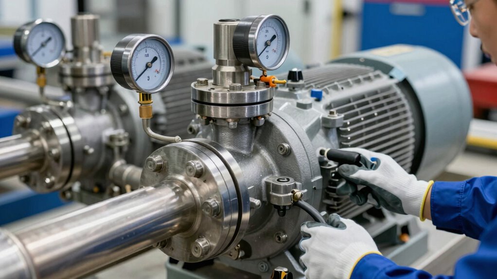Think of your pump as a heartbeat—constant care keeps it healthy. While you can’t prevent every failure, implementing preventive strategies can markedly reduce risks. Regular inspections, lubrication, and monitoring vibrations are like check-ups for your pump. These failure prevention methods catch issues early, keeping your system running smoothly. Though total prevention isn’t guaranteed, diligent maintenance minimizes downtime and extends your pump’s lifespan, ensuring reliable performance.