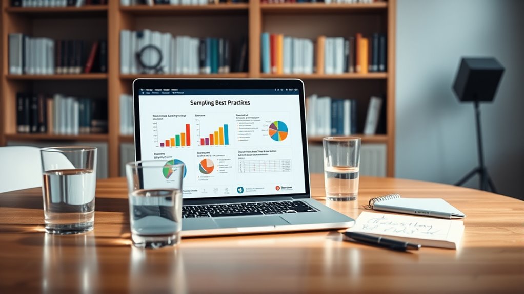 To guarantee your sampling yields the most accurate results, focus on designing a well-structured plan that minimizes bias and variability. Prioritize sampling ethics by ensuring your methods respect participant rights and confidentiality. Address survey biases by carefully selecting your sample to reflect the target population. To optimize accuracy: