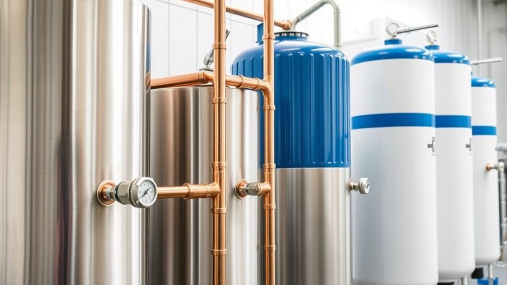 When designing or upgrading a water system, incorporating pressure tanks and expansion tanks can substantially improve performance and longevity. These tanks help regulate water pressure, reduce pump cycling, and protect your plumbing from pressure fluctuations. To maximize their benefits, you need to pay attention to pump sizing and tank maintenance. Proper pump sizing ensures the system operates efficiently without overworking the pump or causing pressure surges, while regular tank maintenance keeps everything running smoothly and prevents costly failures.
