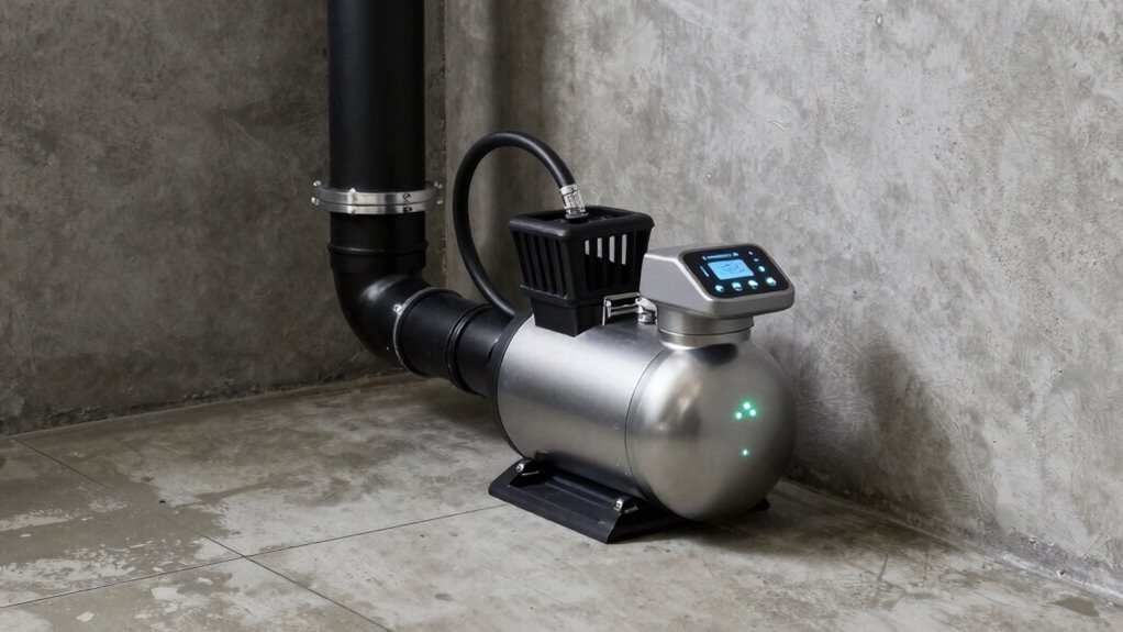 Smart monitoring features considerably improve flood prevention by providing real-time alerts and remote control capabilities. I can receive instant notifications if the pump detects a problem or if water levels rise unexpectedly, allowing me to act quickly. These features also let me monitor system performance from anywhere, reducing the risk of basement flooding. Overall, smart technology offers peace of mind and proactive management, minimizing potential water damage and costly repairs.
