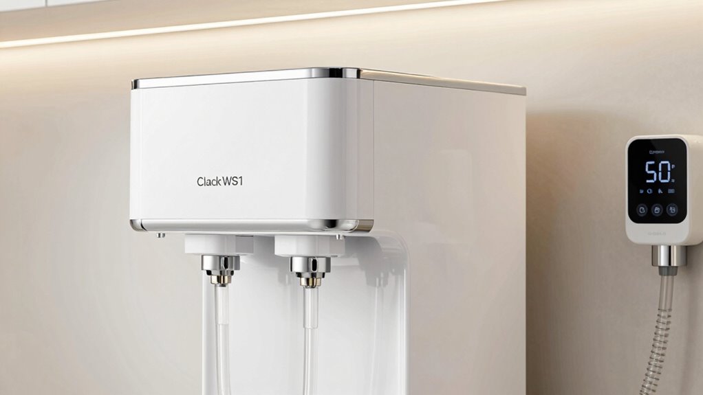 The Clack WS1 units come with a standard warranty, typically covering parts and labor for one year. Some sellers or installers may offer extended warranties or maintenance plans, so I recommend checking with your provider for the best options. I always suggest reviewing the warranty details carefully to guarantee you’re protected against potential issues, especially if you’re investing in a high-quality water softener like the WS1.